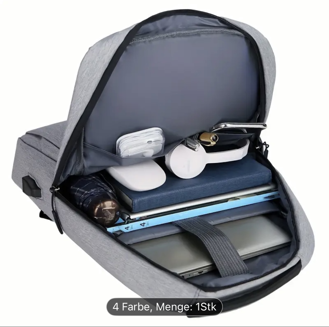Hergestellt aus strapazierfähigem, wasserabweisendem Material bietet der Rucksack sicheren Stauraum für Laptop, Dokumente und persönliche Essentials. Dank durchdachter Innenaufteilung und integriertem USB-Port (Powerbank nicht enthalten) ist er perfekt geeignet für Business, Reisen, Studium oder Alltag.