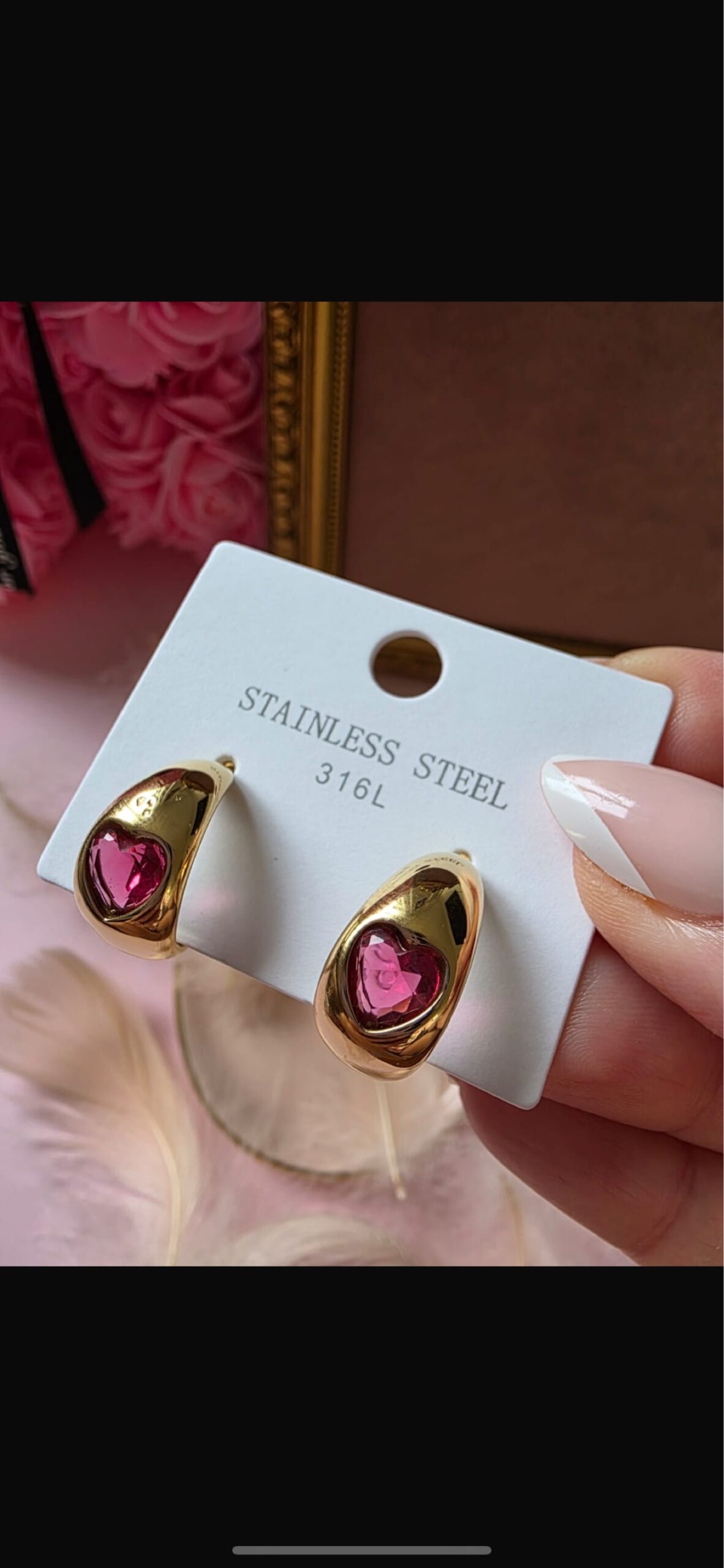 Elegante Creolen aus Edelstahl 316L mit funkelnden pinken Herz-Kristallen – perfekt für Alltag und besondere Anlässe.